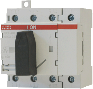 Hoofdschakelaar 4-polig 40 ampere. Past op din rail. Bediening dmv draaischakelaar. Vergrendelbaar