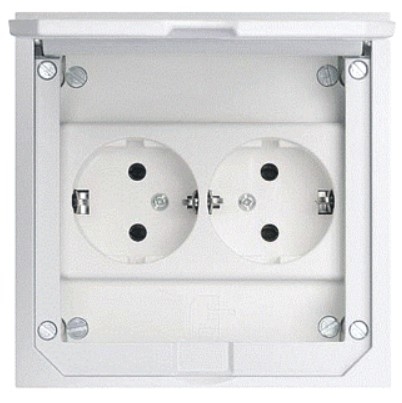 ABL SURSUM vloercontactdoos vloercontactdoos, aluminium-drukgegoten, grijs/zilver, deksel rechthoekig, geschikt voor natte reiniging, geschikt voor vloergoot, geschikt voor holle vloer, geschikt voor dubbele vloer, 2 apparaatbekers, min. inbouwdiepte 60mm, lengte buitenmaat 112mm