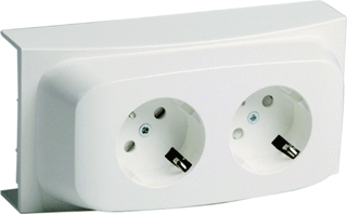 2-polig met randaarde en kinderbeveiliging. 16A / 250V~ met insteekcontacten voor massieve aders. Bestaat uit montageplaat met voorgemonteerde en voorbedrade elementen, kap en bevestigingsmateriaal. Zowel horizontaal als verticaal toepasbaar. Gedraaide elementen zodat haakse contactstoppen fraai langs de plint weglopen. Indien nodig zijn beide elementen eenvoudig gescheiden te schakelen. Overlap met afdekplint is 5mm. Zuiver haaks en op maat zagen van afdekplint is niet nodig.