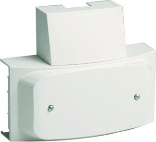 - Bestaat uit basisplaat, montageplaat, kap en aftakkap met inzetplaatje. – Voor verticale aftakking met K40-profiel, koker P25, K25, Z25 of KK 25×22 waarbij de juiste scheiding van beide compartimenten wordt gecontinueerd. – Via ronde breekpoorten in de basisplaat is invoer vanuit de wand mogelijk. – Voldoende lasruimte onder de kap. – Overlap met afdekplint is 5mm. Zuiver haaks en op maat zagen van afdekplint is niet nodig.
