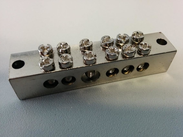 Barth potentiaalvereffeningsrail, (hxbxl) 12x12x63mm, bouwvorm niet modulair, uitvoering alleen klemko, 6 aansl. geleider tot 6 mm², 1 aansl. geleider tot 25 mm, contactrail messing, oppervlakte contactrail galvanisch verzinkt, klemko messing, oppervlakte klemko galvanisch verzinkt, 7 aansluitingen aarde