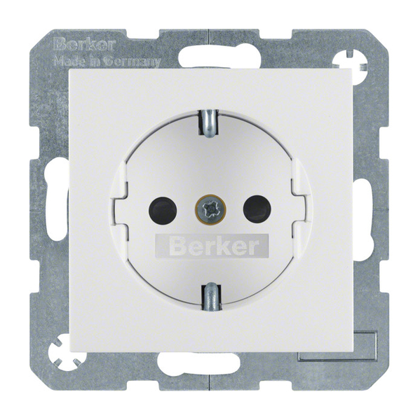 Wandcontactdoos met randaarde en kinderbeveiliging voor serie S1/B3/B7. Voorzien van steekklemmen.