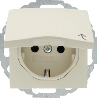 Hager Berker s 1 wandcontactdoos (schakelmateriaal), crème wit/elektrowit, opdruk/indicatie pijlsymbool, met klapdeksel, ral-nummer 1013, inbouw, soort bevestiging klauw-/schroef, kwaliteitsklasse duroplast, halogeenvrij, oppervlaktebescherming geen (onbehandeld)