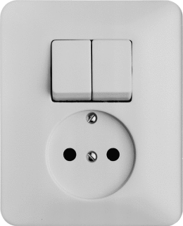 Abb Busch Jaeger si combinatie schakelaar/wcd, kunststof, wit, uitvoering schakelaar serieschakelaar, uitvoering wandcontactdoos zonder beschermingscontac, 1 contactdozen, bedieningswijze wip/drukker, montagerichting horizontaal en verticaal, soort bevestiging klauw-/schroefbevestiging, inbouw