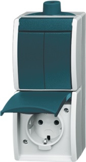 Combinatie voorzien van 1x serieschakelaar en 1x wandcontactdoos met randaarde compleet met onderbak.