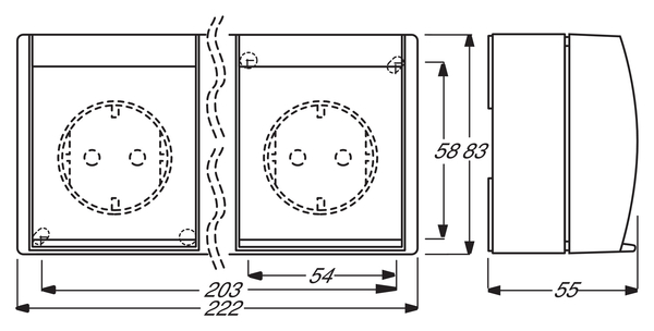 Wandcontactdoos 3-voudig horizontaal compleet met onderbak. wandcontactdozen zijn intern al voorbedraad doorgelust.