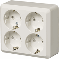 Opbouw 4-voudige wandcontactdoos met randaarde, met verhoogde aanraakbeveiliging, AP wit