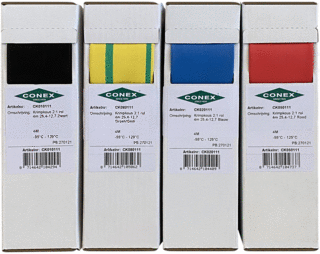 CONEX krimpkous 2:1 rol 5m 19,1-9,5 Transparant materiaal: Polyolefine Voldoet aan UL en RoHS, halogeenvrij, Uitstekende zuurvastheid en corrosiebestendigheid, temp bestendigheid: -55 + 125 graden, krimp temp: 90 graden
