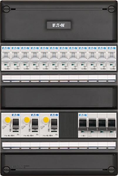 Deze Eaton groepenkast bestaat uit de volgende componenten: