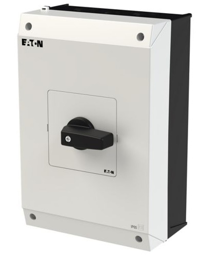 Eaton p 3 werkschakelaar, zwart, 4 polen, nom. stroom (ac-21) 63a, nom. vermogen (ac-23 / 400 v) 37kw, nom. vermogen (ac-23 / 690 v) 30kw, schakelfunctie aan/uit, bediening knop, opbouw, behuizing kunststof, kabelinvoering m25/m32, beschermingsgraad (ip) ip65