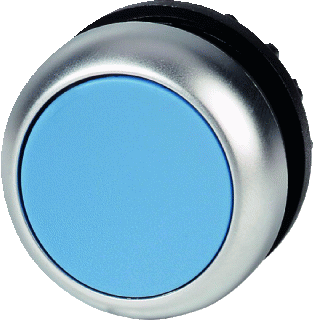 Eaton rmq-titan drukknop frontelement, knop blauw, 1 commandoposities, bouwvorm lens rond, gatdiameter 22mm, beschermingsgraad (ip) ip67, terugverend, met frontring, frontrand kunststof, frontrand chroom, type knop vlak, frontdiameter 29.5mm, gravering symbool, uitvoering drukknop (normaal)
