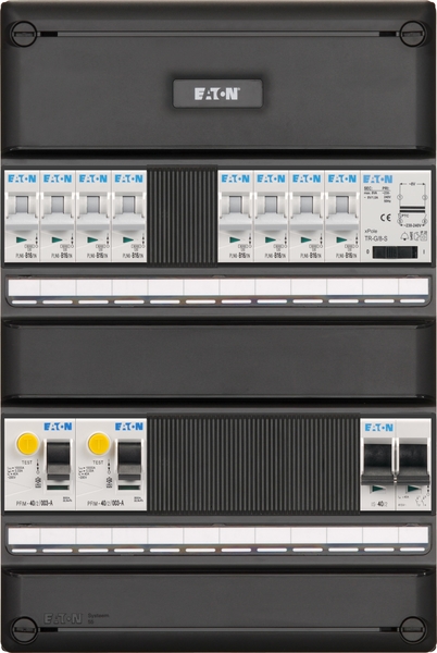 Eaton groepenkast 1-fase compleet voorbedraad en aansluitklaar. Voorzien van buisinvoerstuk met aardrail. Wordt geleverd zonder inzetstuk onderzijde.