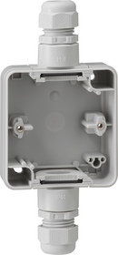 Gira spatwaterdicht opbouw opbouwbak inbouwschakelmateriaal, kunststof, grijs, samenstelling bodemplaat behuizing, 1 eenheid, montagerichting verticaal, kwaliteitsklasse thermoplast, halogeenvrij, oppervlaktebescherming geen (onbehandeld), uitvoering oppervlakte glanzend, met wartelinvoering 2xm20