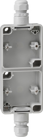 Gira spatwaterdicht opbouw opbouwbak inbouwschakelmateriaal, kunststof, grijs, samenstelling bodemplaat behuizing, 2 eenheden, montagerichting verticaal, kwaliteitsklasse thermoplast, halogeenvrij, oppervlaktebescherming geen (onbehandeld), uitvoering oppervlakte glanzend, met wartelinvoering 2xm20