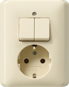 Combinatie serie / randaarde voor normale inbouwdoos half opbouw (steekt 2,5cm uit de muur). Past in standaard inbouwdoos.