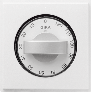 Afdekking met draaiknop voor tijdschakelaars en jaloezieschakelaars resp. -knoppen zuiver wit Aanwijzingen : - Door het verwisselen van de symboolschijven voor tijd (15 tot 120 min. of 30 tot 60 min.) en jaloezie (, ), kan deze afdekking universeel worden