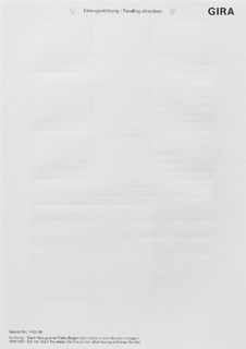 Opschriftlabels 51,2 x 7 mm 108 tekstkaders Kenmerken: - Voorgestanste tekstlabels van PET-folie op DIN A4-formaat voor de Gira labelsoftware. Aanwijzingen : - De tekstlabels kunnen uitsluitend met een laserprinter worden bedrukt.