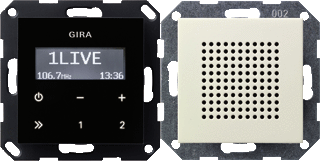 Inbouwradio RDS met een luidspreker Opzetstuk bedieningselement in zwartglaslook crème wit glanzend Kenmerken: - FM-radio met RDS-weergave voor inbouwmontage. - De inbouwradio RDS bestaat uit een basiselement radio met opzetstuk bedieningselement en een ba