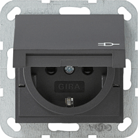 Wandcontactdoos kinderveilig met randaarde en klapdeksel antraciet.