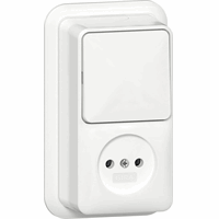 Nom. spanning: 250.0v, Montagewijze: opbouw, Bedieningswijze: wip/drukker, Kleur: wit, 1 contactdozen, Materiaalkwaliteit: duroplast, Materiaal: kunststof, Bevestigingswijze: klauw-/schroefbevestiging, Uitvoering schakelaar: wisselschakelaar, Uitvoering wandcontactdoos: zonder beschermingscontact