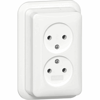 Dubbele wandcontactdoos zonder randaarde 2-polig 16 A 250 V~ met montageplaat en adapter K/P25