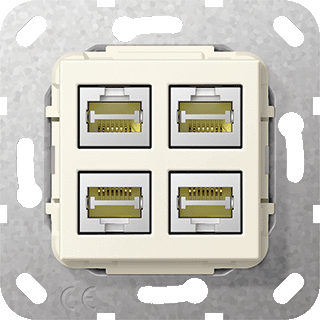 Gira communicatie communicatie comp. (schakelmat.), thermoplast, crème wit, ral-nummer 1013, uitvoering oppervlakte glanzend, halogeenvrij, aansluitwijze lsa plus, 4 rj45 cat. 6a aansl.