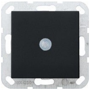 Inbouw pir bewegingsmelder met Gira afdekplaat. Deze melder vereist een Nulaansluiting (blauw) nalooptijd instelbaar van 5 sec, 30sec, 1min, 3min, 5min, 8min.