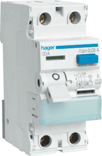 Hager klasse a aardlekschakelaar, 2 polen, nom. (meet-)spanning 230v, nom. (meet-)stroom 63a, nom. foutstroom 30ma, type lekstroom a, din-rail (dra), 2 modulen 18 mm, nom. afschakelvermogen en 60898 1.5ka, stootspanningsvastheid 0.25ka, frequentie 50hz, beschermingsgraad (ip) ip20