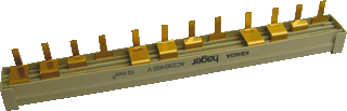 Aantal fasen 3, geschikt voor aantal apparaten 3, delingsmaat 18 mm, doorsnede 10 mm², lengte 216 mm, nom. continustroom iu 63 a, uitvoering elektrische aansluiting pen, toegekende stootspanning 400 kv, nom. bedrijfsspanning ue 400 v, geschikt voor apparaten met nulgeleider, geschikt voor apparaten met hulpschakelaar, aantal polen 4, ten behoeve van serie(s) 4p. installatieautomaten
