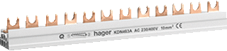 Hager quickbusbar kamrail, diameter 3mm², lengte 210mm, 3 fasen, geschikt voor aantal apparaten 3, delingsmaat 18mm, nom. continustroom iu 63a, uitvoering elektrische aansluiting vork, geïsoleerd, toegekende stootspanning 400kv, nom. bedrijfsspanning ue 400v, geschikt voor apparaten met nulgele