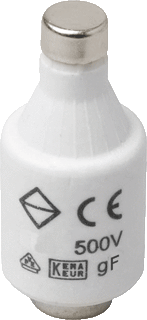 Din-grootte dii, nom. (meet-)stroom 6 a, nom. (meet-)spanning 500 v, bedrijfsklasse gf, kleurcode groen, uitschakelkarakteristiek snel (f), kleur groen