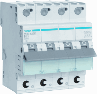 Hager quickbusbar b-karakteristiek 3p + nee installatieautomaat 3, meeschakelende nul, 4 polen (totaal), uitschakelkarakteristiek b, nom. (meet-)stroom 25a, nom. afschakelvermogen en 60898 6ka, nom. afschakelvermogen iec 60947-2 6ka, breedte in module-eenheden (18mm) 4, bouwbreedte 70mm
