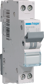 Hager mjn c-karakteristiek 1-polig + nee installatieautomaat 1, uitschakelkarakteristiek c, nom. (meet-)stroom 6a, nom. (meet-)spanning 230v, nom. afschakelvermogen en 60898 4.5ka, nom. afschakelvermogen iec 60947-2 4.5ka, spanningstype ac, energiebegrenzingsklasse 3, frequentie 50hz, meeschakelende nul