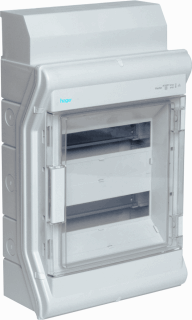 Hager vector modulaire verdeelkast, polystyrol, opbouw, 2 din-rails, 24 modulen 18 mm, beschermingsgraad (ip) ip65, dubbel geïsoleerd, hoogte uitwendig 427mm, breedte uitwendig 310mm, diepte uitwendig 151mm, afdichtingswijze deur doorzichtig