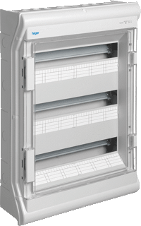 Hager vector modulaire verdeelkast, polystyrol, opbouw, 1 din-rails, 54 modulen 18 mm, beschermingsgraad (ip) ip65, dubbel geïsoleerd, hoogte uitwendig 602mm, breedte uitwendig 418mm, diepte uitwendig 151mm, afdichtingswijze deur doorzichtig