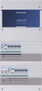 Hager groepenkast VKG44E met afmeting 220x475mm.