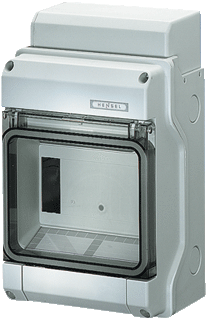 Verdeelkasten uit hoogwaardig thermoplast. Voor opbouwtoepassingen in gebouwen of beschermde buitenopstelling. Automatenkast, met 6 modulen, voor de inbouw van apparaten met klikbevestiging op DIN-rail. Kabelinvoer via geïntegreerde elastische afdichtmembr