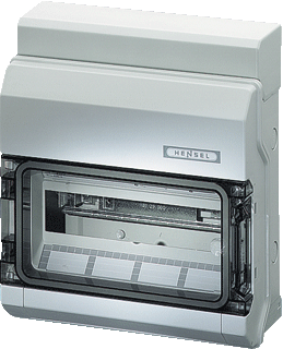 Hensel kv-verdelers modulaire verdeelkast, kunststof, opbouw, 1 din-rails, 12 modulen 18 mm, 1 hoogte eenheid, beschermingsgraad (ip) ip65, hoogte uitwendig 333mm, breedte uitwendig 295mm, diepte uitwendig 129mm, afdichtingswijze deksel doorzichtig, met klemmenblok j-pe-klem, met aardklem
