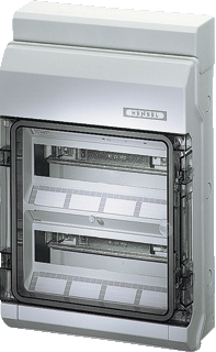 Verdeelkasten uit hoogwaardig thermoplast. Voor opbouwtoepassingen in gebouwen of beschermde buitenopstelling. Automatenkast, met 24 modulen, voor de inbouw van apparaten met klikbevestiging op DIN-rail. Kabelinvoer via geïntegreerde elastische afdichtmemb
