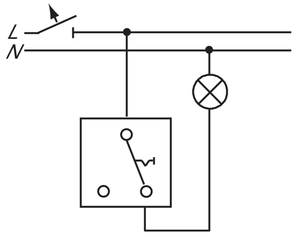 Schakelaar voor enkelpolig- en wissel (hotel) schakeling.