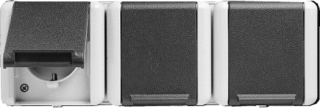 3-Voudige wandcontactdoos horizontaal opbouw waterdicht. Compleet geleverd met onderbak. De wcd's zijn onderling door middel van bedrading doorverbonden.