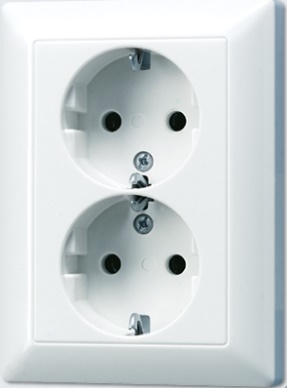 Wandcontactdoos randaarde met kinderbeveiliging voor normale inbouwdoos half opbouw (steekt ongeveer 2,5cm uit de muur)