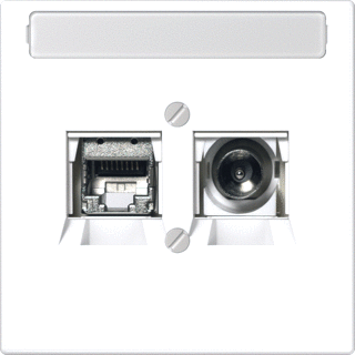 Jung dataset compleet met binnenwerk. Coax aansluiting dmv. f-connectoren. De data wcd Cat 6a kan zonder gereedschap gemonteerd worden.