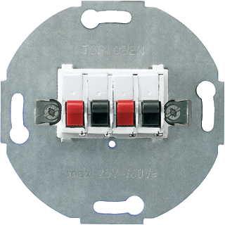 Jung basiselement outlet-component, samenstelling basiselement, gebruik luidsprekeraansluiting, met draagring, inbouw, oppervlaktebescherming geen (onbehandeld), soort bevestiging schroef, beschermingsgraad (ip) ip20, 4 aansluitingen