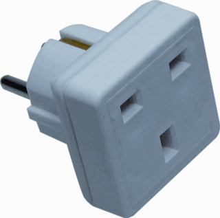 Kaiser Martin 146 reisstekker enkel, wit, verloopt van 2-polig + aarde engeland naar 2-polig randaarde nederland