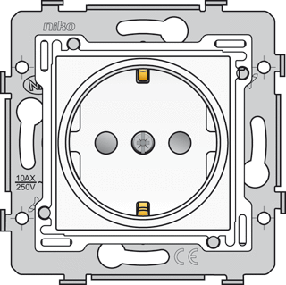 Niko original wandcontactdoos (schakelmateriaal), kunststof, wit, uitvoering randaarde, 1 eenheid, inbouw, aansluitwijze steekklem, met kinderbeveiliging, ral-nummer 9010, variant wit, afdekking centraalplaat, soort bevestiging schroefbevestiging, halogeenvrij