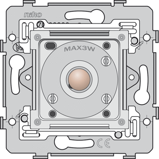 Niko basiselement enkel drukcontact, samenstelling basiselement, bedieningswijze druktoets, contacten 1 maakcontact, met verlichting, inbouw, oppervlaktebescherming geen (onbehandeld), nom. spanning 250v, slagvast