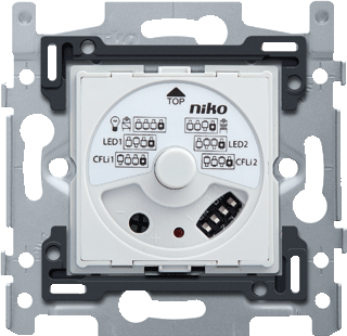 Niko dimmer, samenstelling basiselement, bedieningswijze draaiknop, type belasting universeel, ingang voor nevenunit, lichtwaardegeheugen, inbouw, soort bevestiging schroefbevestiging, halogeenvrij, beschermingsgraad (ip) ip20, nom. vermogen 5 - 325va, nom. spanning 230v, frequentie 50 - 60hz