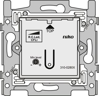 Niko electronica dimmer, samenstelling basiselement, bedieningswijze drukker, type belasting capacitieve belasting, ingang voor nevenunit, lichtwaardegeheugen, inbouw, soort bevestiging schroefbevestiging, beschermingsgraad (ip) ip20, nom. vermogen 2 - 100va, toepassing led-verlichting