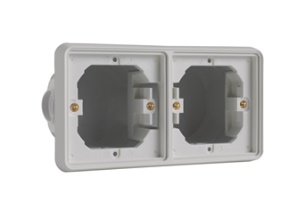 Montagewijze overig, Vorm rechthoekig, Bouwvorm inbouwdoos (apparaatdoos), Uitvoering dubbel, Uitgerust met geen, Voor aantal inbouwsokkels 2, Bevestiging schakelmateriaal schroeven, Met schroeven, Type behuizingsdoorvoer uitbreekpoort, Voor buisdiameter 16 mm, Achterinvoer, Aantal invoeren 4, Materiaal kunststof, Halogeenvrij, Oppervlaktebescherming geen (onbehandeld), Kleur grijs, Beschermingsgraad (IP) ip55, Deksel geen, Functiebehoud geen, Winddicht, Behuizingsdoorvoer via uitbreekopening, Speciale toepassing overig